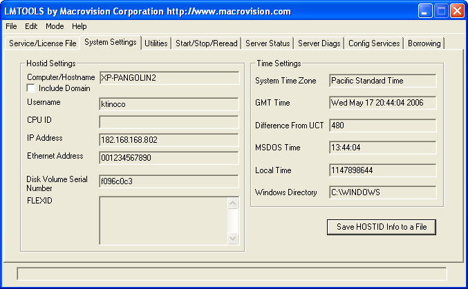 3. Save the lmhostid output and the hostname (or IP address) for the creation of the server license file.